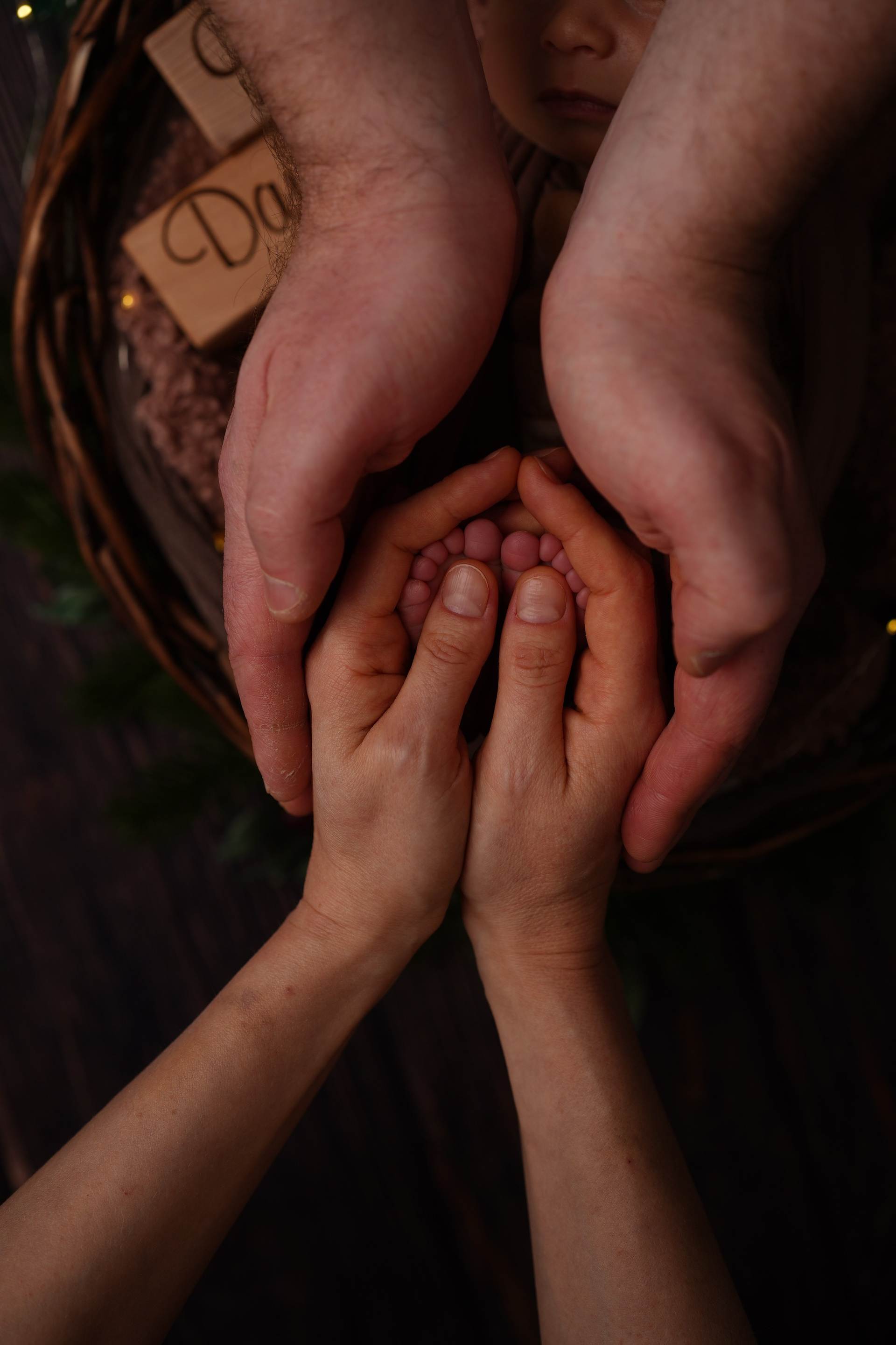 Стандартный пакет фотосессии. Дополнительно делали слепок старшей сестренке и оформили слепки в одну раму.