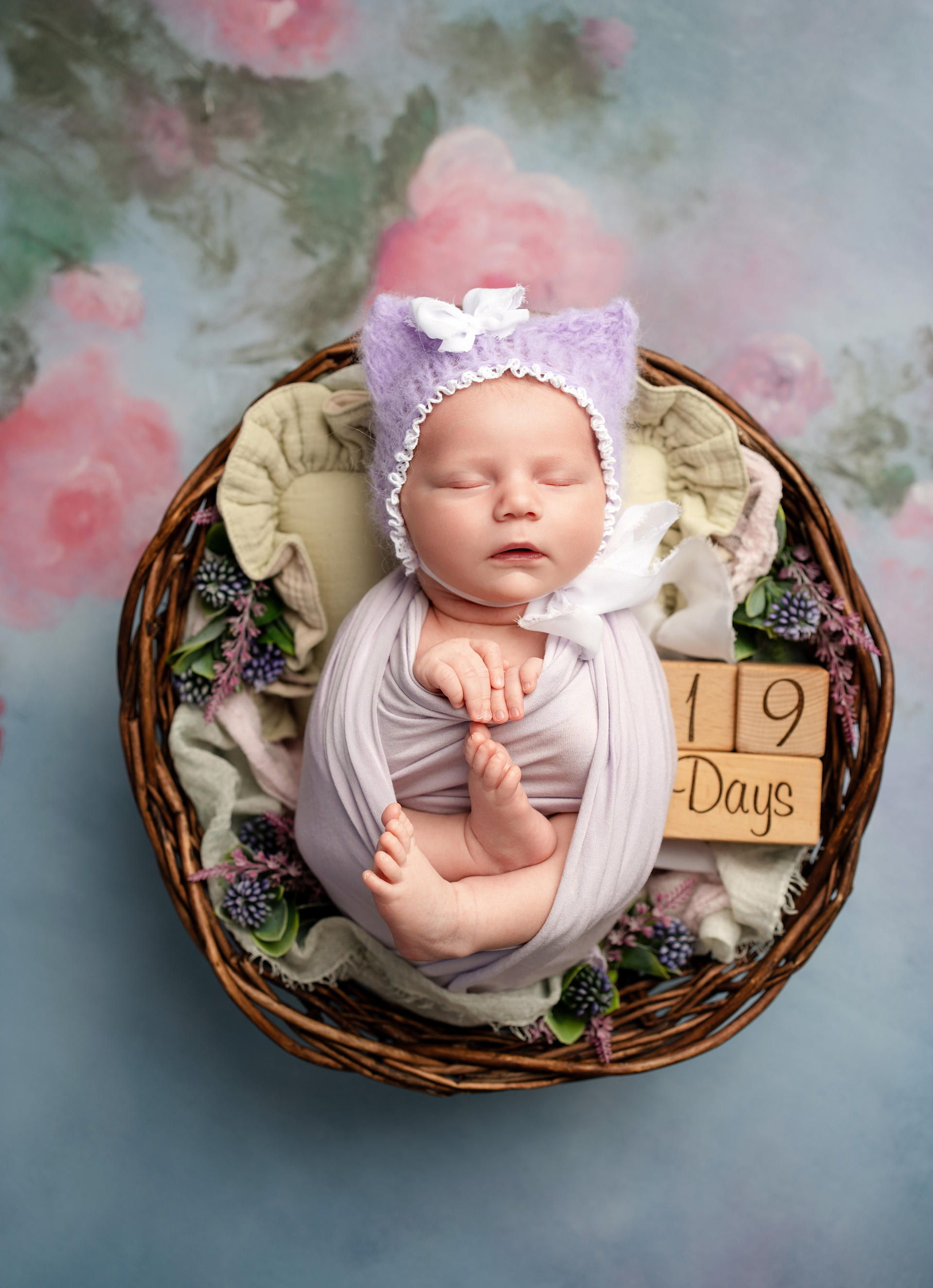 МАКСИМАЛЬНЫЙ — три образа, два фона и реквизит (кроватка или корзинка)